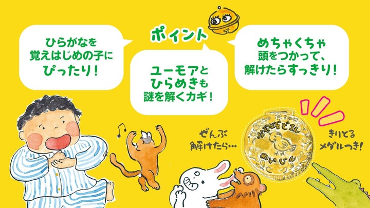 - 問題は絵を読み解いて答える形式で、ユーモラスで愛嬌たっぷりな動物たちが登場