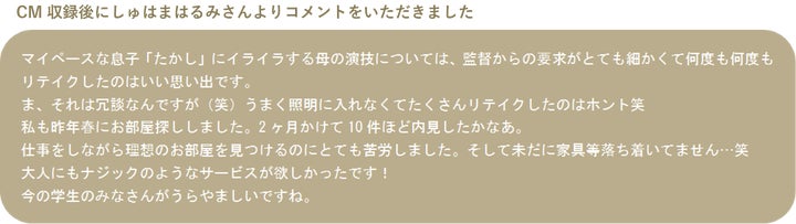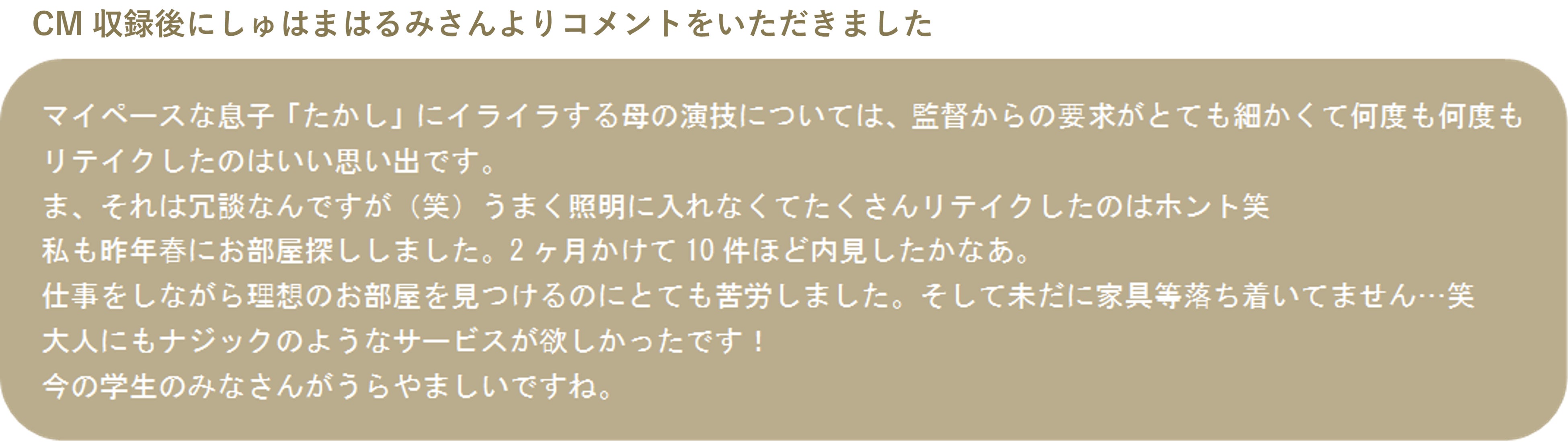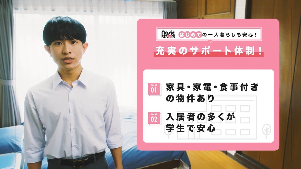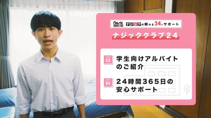 - CMでは男子高校生がナジックのサービスを使って一人暮らしの部屋を探し、母親に説明