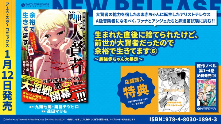- 株式会社アーススター エンターテイメントのコミックレーベル【アーススター コミックス】から、人気作品『生まれた直後に捨てられたけど、前世が大賢者だったので余裕で生きてます ~最強赤ちゃん大暴走~』の第6巻が1月12日に発売されます。