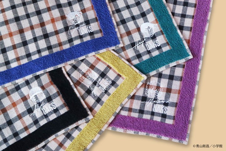 - ハンカチは「DAKS」のハウスチェック柄に刺繍されたブランドロゴとキャラクターのアイコンマーク
