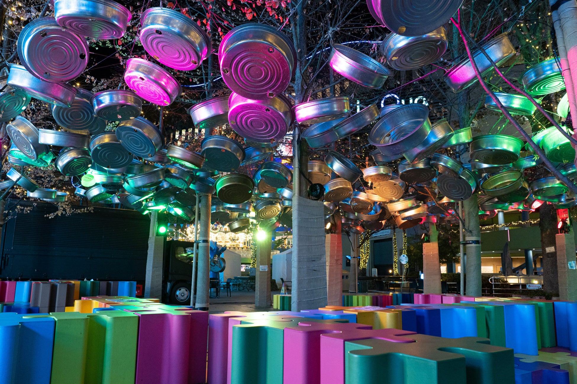 - ラクーアガーデンではたらいが吊るされた森や芸人シルエットロードが楽しめる