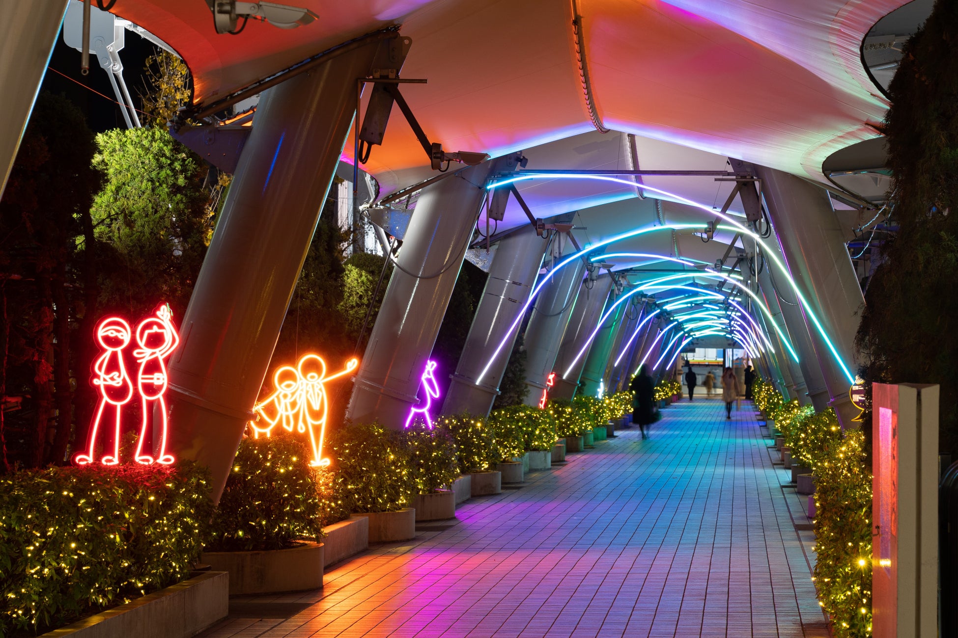 - 連絡通路にはツッコミを入れたくなるようなイルミネーションやお笑い芸人のシルエットがある