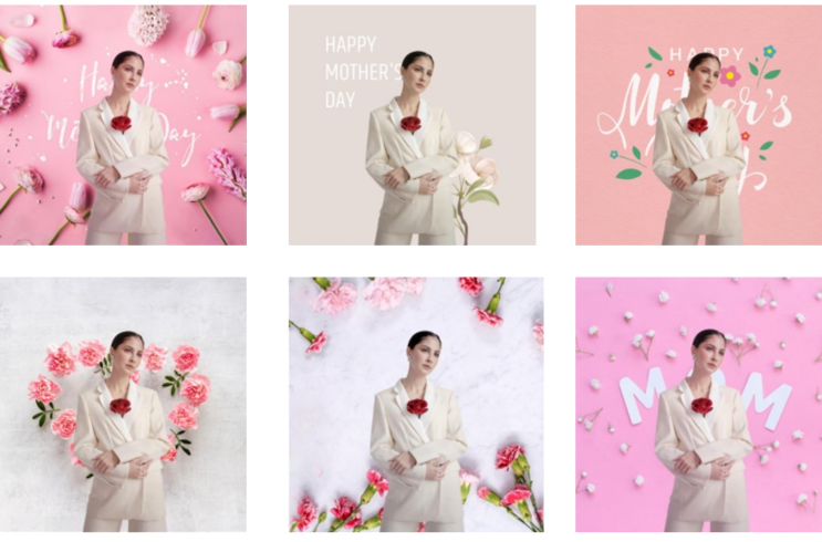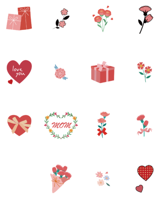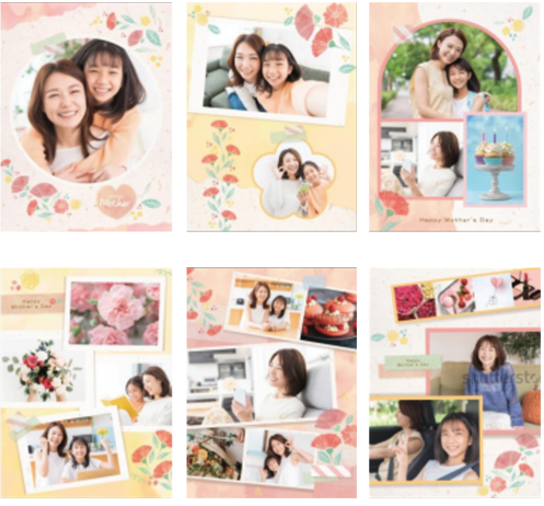 明るくかわいい16種類の背景テンプレートや、母の日をテーマにしたステッカーやコラージュなどが追加されました。
