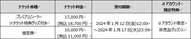 - 先行チケットの申し込みが開始され、dアカウントでログインしチケットを申し込むと優遇抽選でチケットが用意される