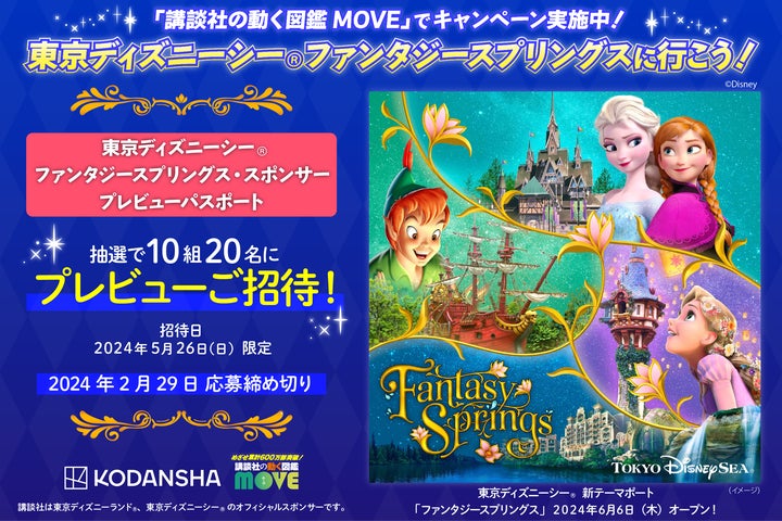 キャンペーンでは、2024年6月6日にオープンする東京ディズニーシーの新テーマポート「ファンタジースプリングス」を一足先に体験できる「ファンタジースプリングス・スポンサープレビューパスポート」が10組20名にプレゼントされます。