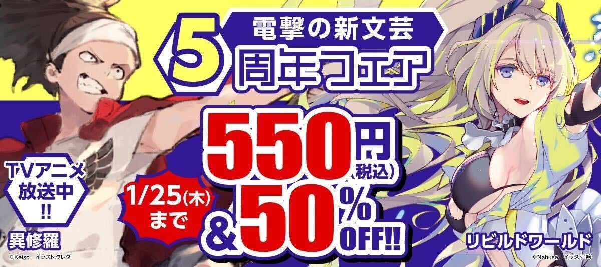 - 電子書店で電撃の新文芸約140タイトルが550円もしくは50%オフで読めるフェア開催