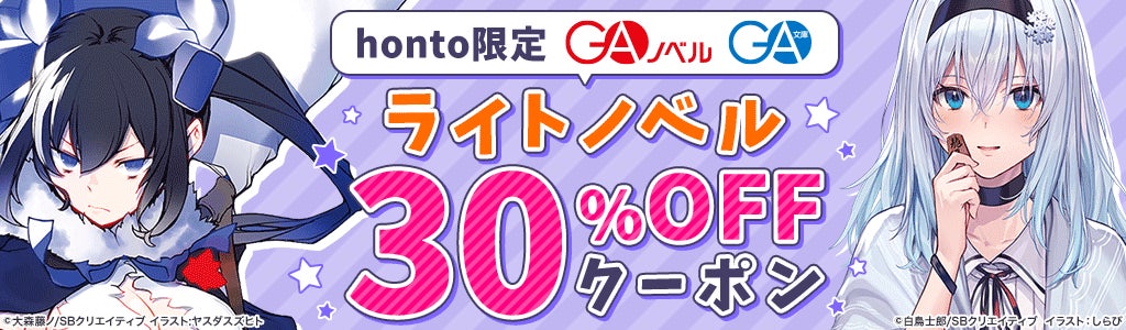 honto電子書籍ストアで販売中の「GA文庫・GAノベル」対象作品に使える30%OFFクーポンを配布します。