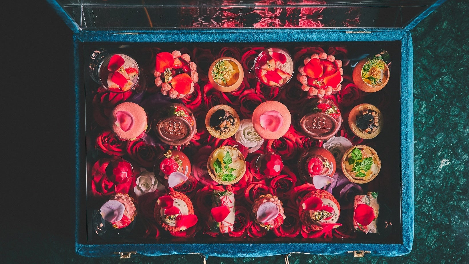 最高品質の食用バラとショコラやベリーを組み合わせたスイーツやセイボリーが楽しめます。