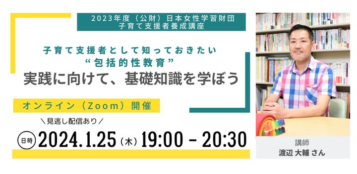 講師は渡辺大輔さんで、包括的性教育に関する基礎知識や実践事例についてお話しします。