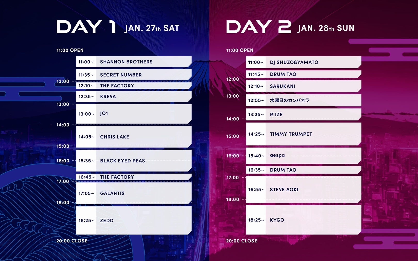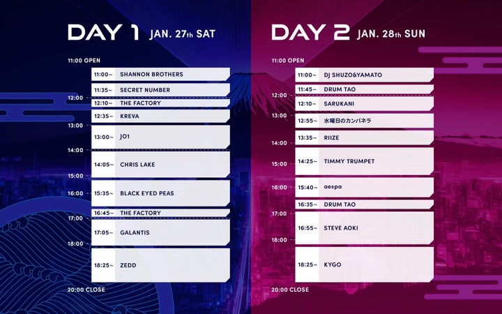 - DJ SHUZO&YAMATOとして出演し、KYGOやSTEVE AOKIなど他のアーティストも参加予定