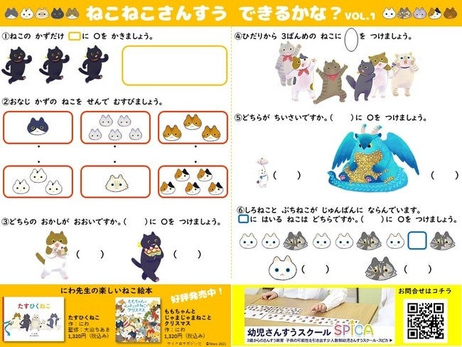 また、絵本に登場するねこたちと一緒にさんすうを勉強することができる「ねこねこさんすうプリント」が無料公開されている。