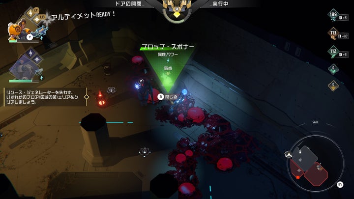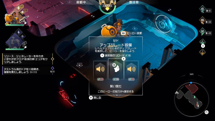 各ダンジョンへは冒険の拠点「ロビー」から出発し、リソースを集めながらドアを開け、タレットの設置やヒーローの強化を行います。