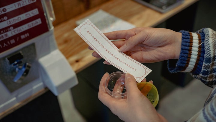 おみくじはガチャガチャを回して引くことができ、引いた短歌は持ち帰ることができます。