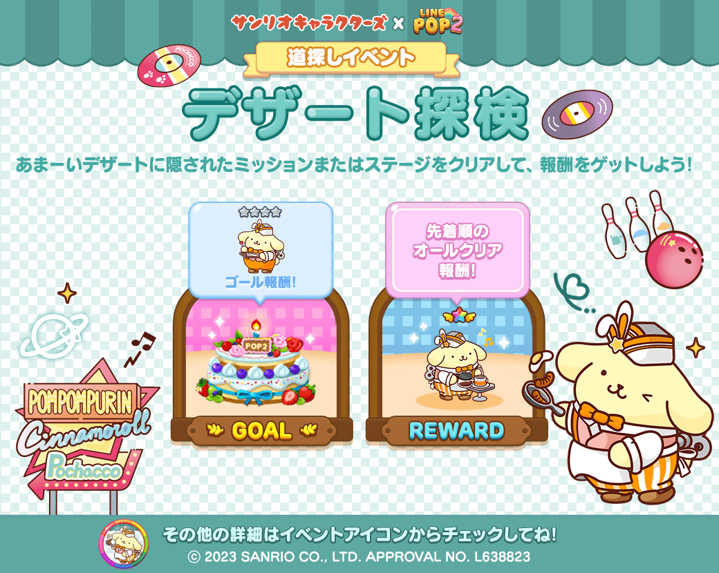 ミッションをクリアし、報酬を獲得しながら次の道へ進んでいく道探しイベントを開催します。ゴールを目指して限定ステージを進むと「★4~6 ダイナーのポムポムプリン」をはじめ、豪華アイテムが獲得できます。