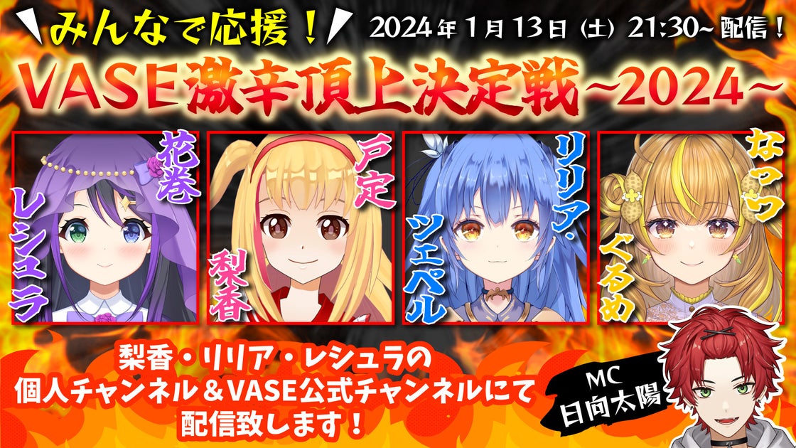 2024年1月13日(土)21時半に、バーチャルライバーグループVASE(ヴェイス)の激辛頂上決定戦が開催されます。