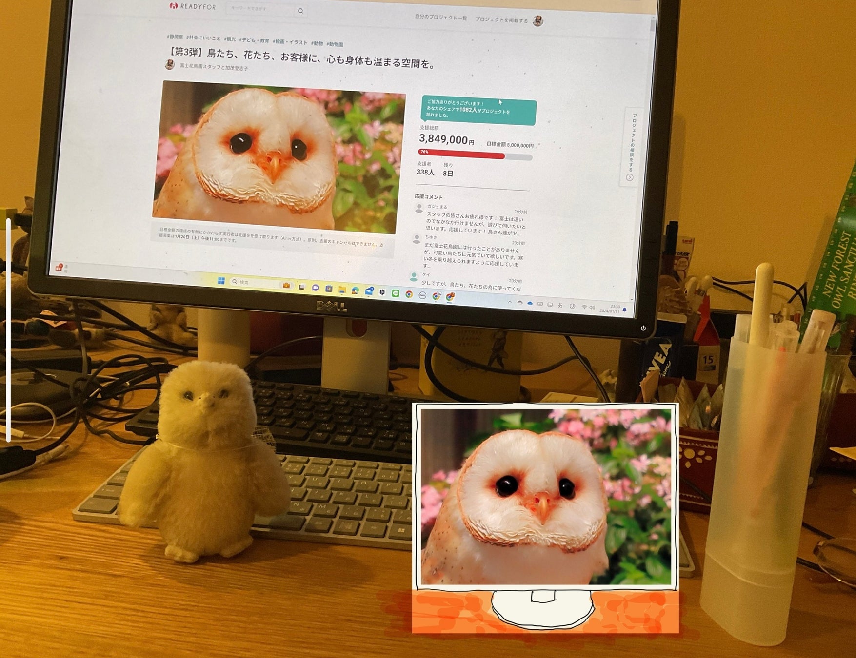 また、富士花鳥園のクラウドファンディングも残り7日となり、新しいリターンとして「あんずちゃんのアクリルスタンド」の販売が開始されました。