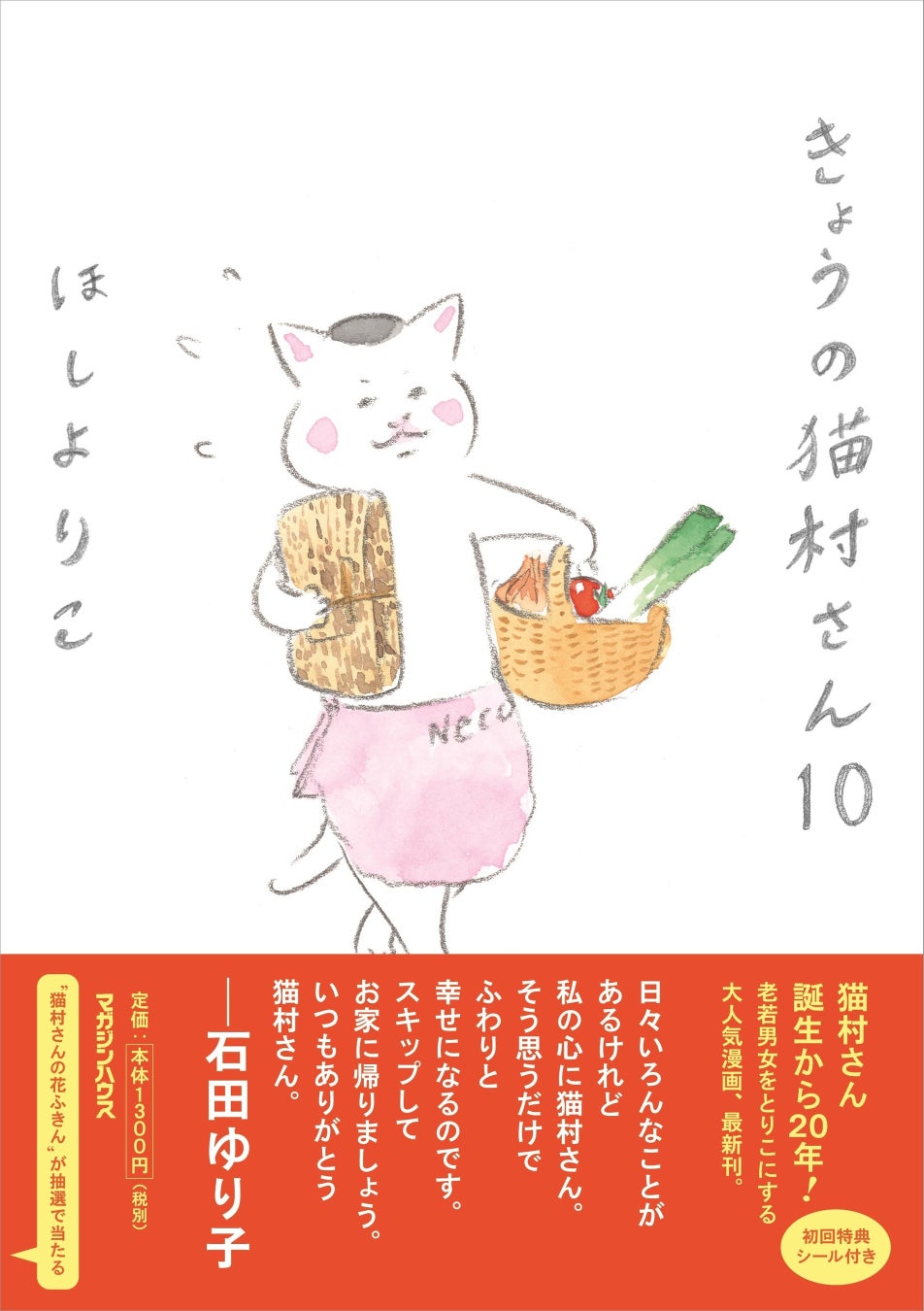 なお、今回は10巻めを記念して初回特典のシール付き。加えて、老舗・中川政七商店とコラボした“猫村さんの花ふきん”が抽選で当たる応募券もついています。