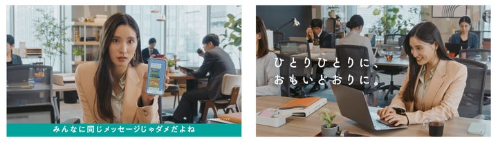 CMでは、土屋太鳳さんがマーケティング担当者を演じ、Linyを使用することで理想的なアカウント運用が実現できる喜びを表現しています。