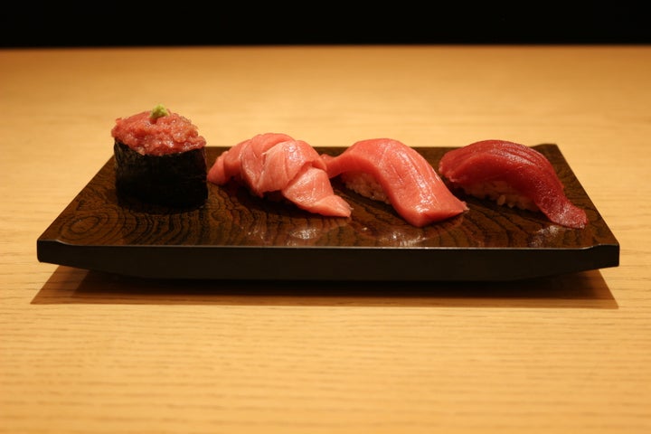 まずは、「廻転鮨 銀座おのでら」のマグロ寿司や、銀座ろくさん亭の銀鮭弁当など、廻転寿司の雰囲気を楽しみながらいただけるメニューがあります。