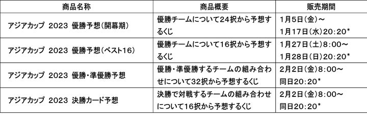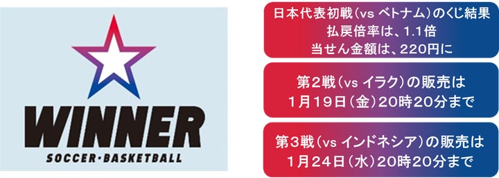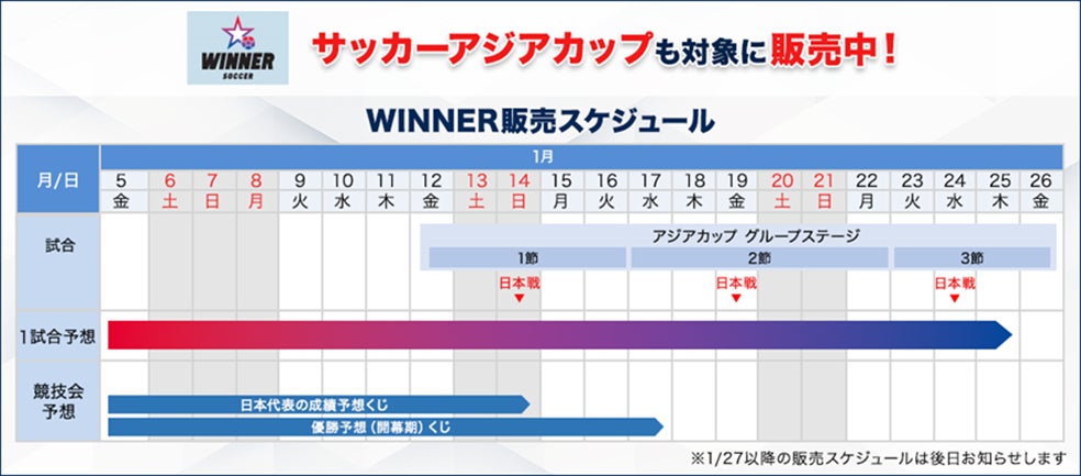 サッカーアジアカップを対象とした「WINNER」の販売期間は1月5日から2月10日までです。