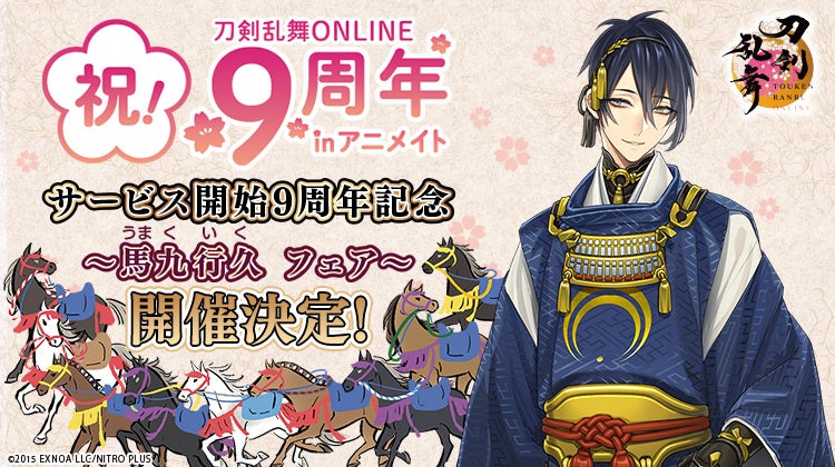 株式会社アニメイトは、「刀剣乱舞ONLINE サービス開始9周年記念~馬九行久(うまくいく) フェア~」に関連して、2月3日から3月3日まで全国のアニメイト・アニメイト通販で様々な施策を実施します。