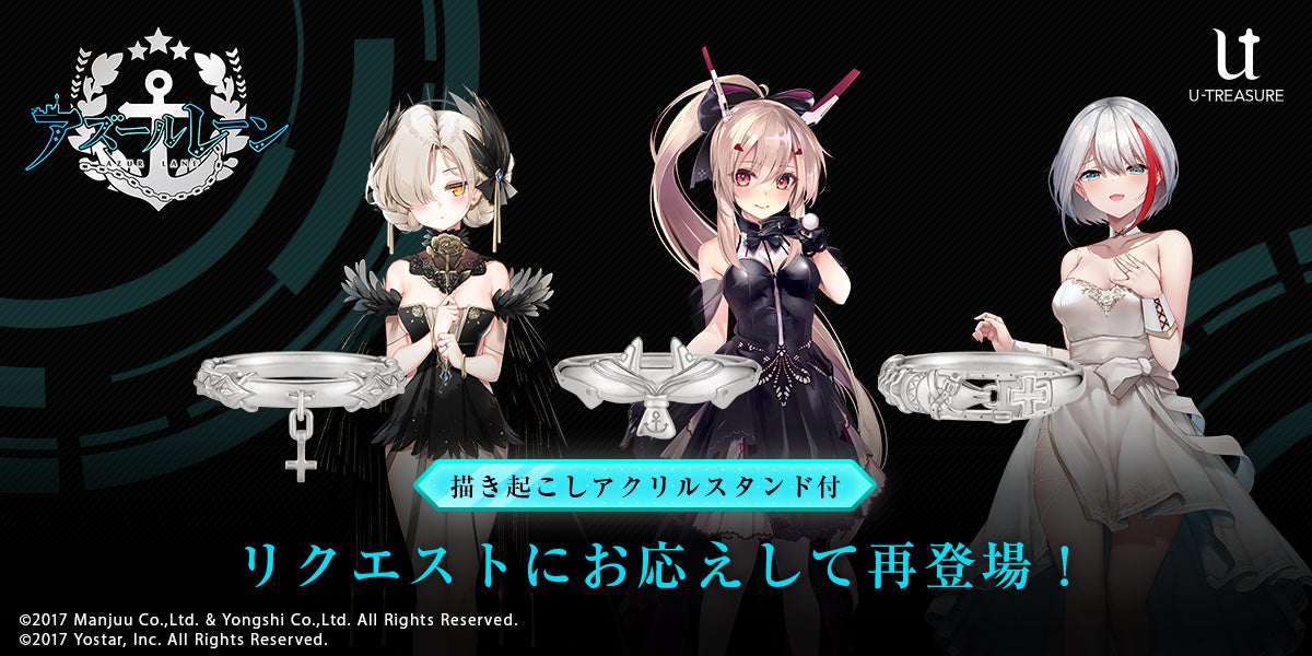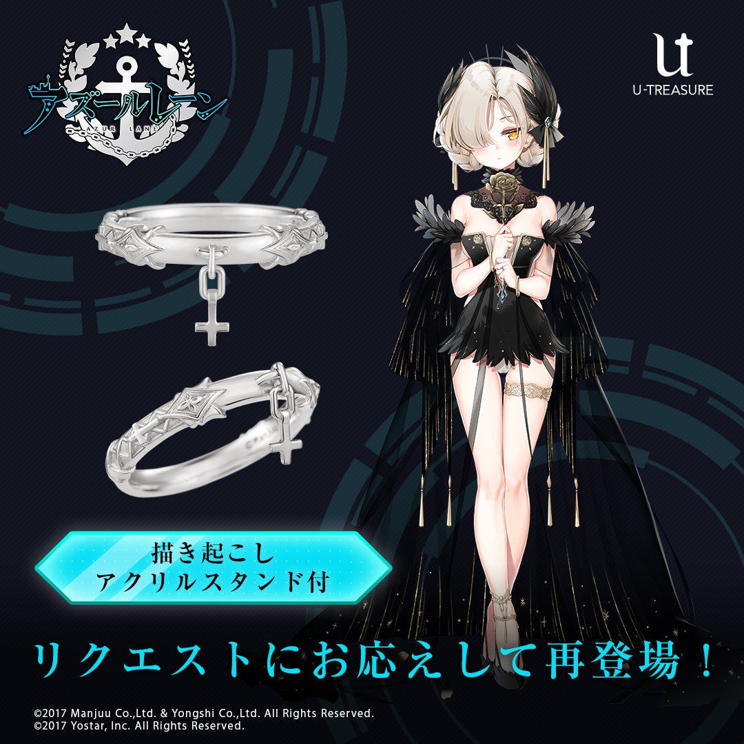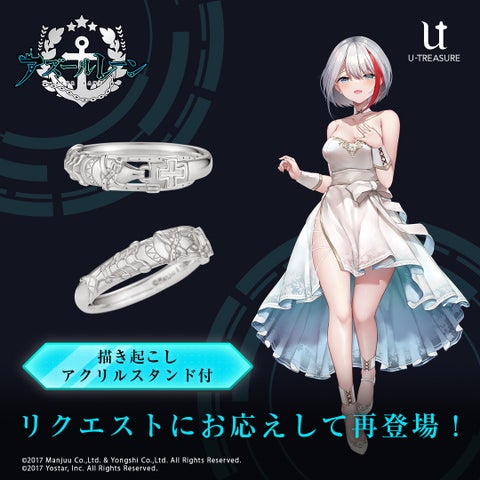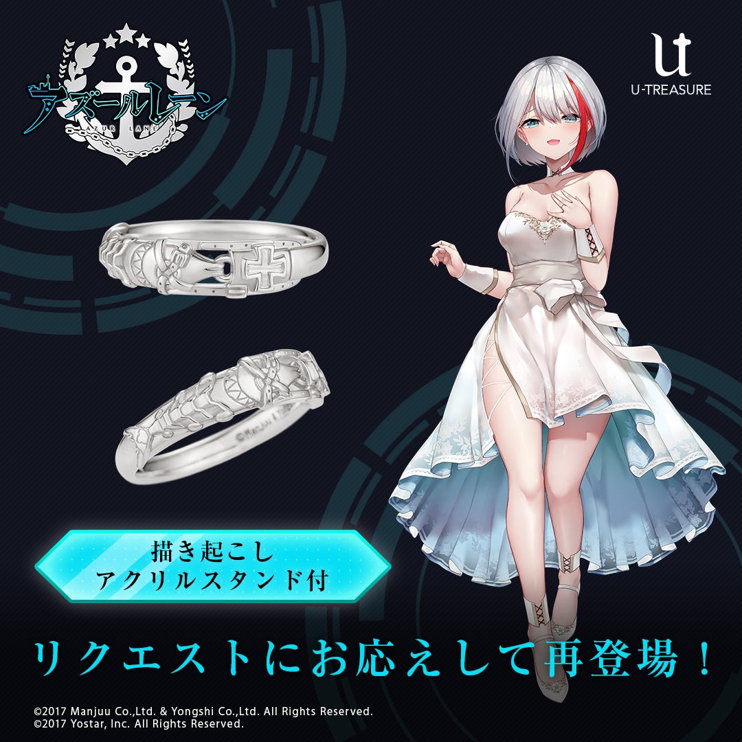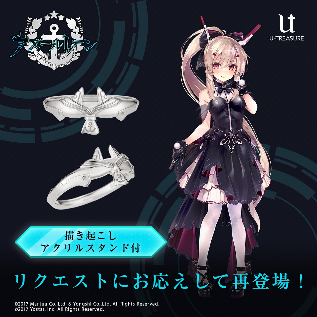 株式会社ユートレジャーでは、人気スマートフォン向けゲームアプリ「アズールレーン」とのコラボレーションアイテム「モチーフリング」の再予約を開始しました。