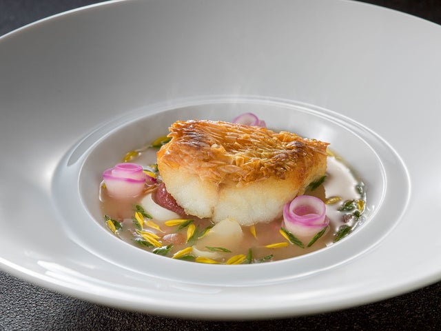 例えば、グランメゾン「レストラン シャンボール」では、若狭湾の和食材「若狭ぐじ」を使った料理が提供されます。