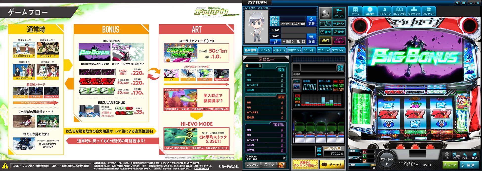- サミーネットワークスが「777TOWN.net」で「パチスロ交響詩篇エウレカセブン HIEVOLUTION ZERO TYPEART」アプリを配信