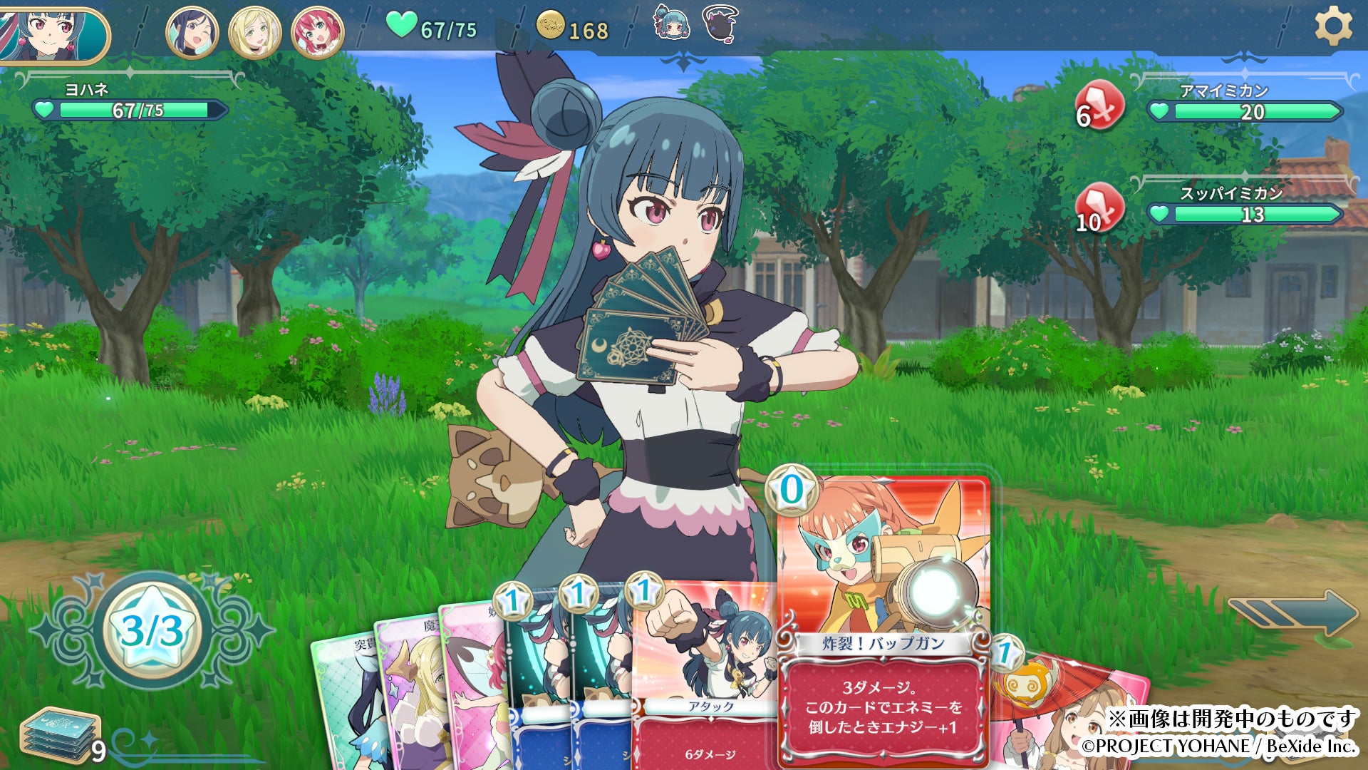 本作はターン制のカードバトルが特徴で、150種類以上の描き下ろしイラストのカードを使って戦います。