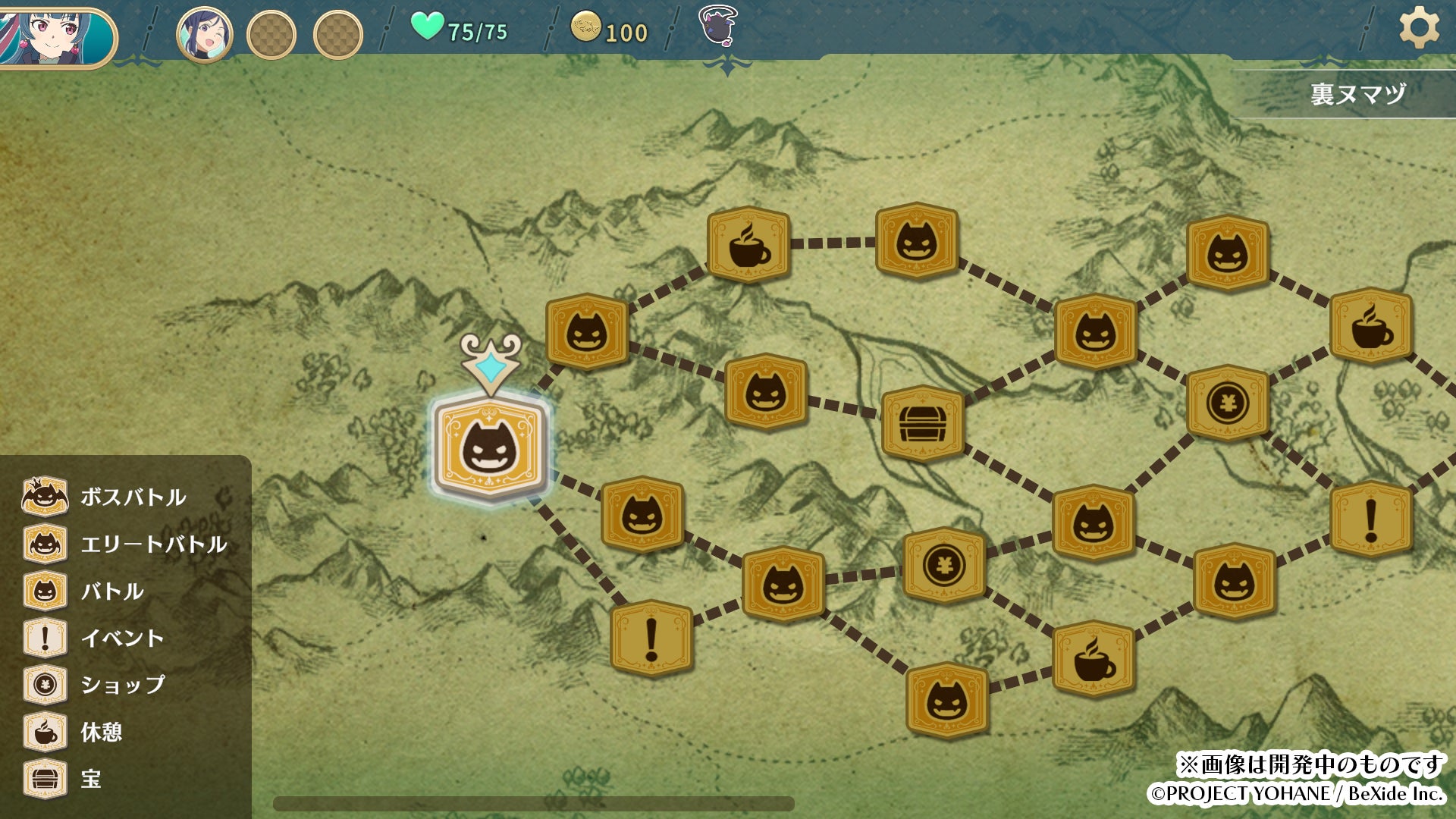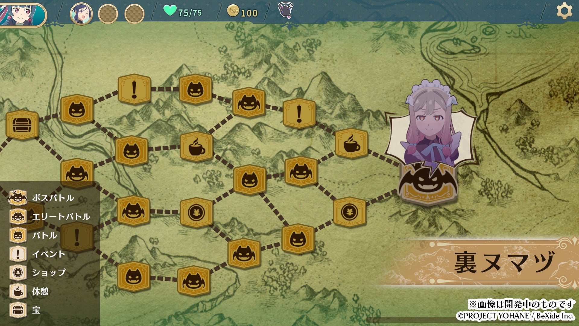 - ルートを選びながら進み、イベントや敵がランダムに変化