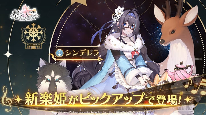 また、期間限定ピックアップガチャでは、新楽姫の「シンデレラ」が登場し、敵を行動不能にしたり、味方全体を回復させるなど、注目のサポーター楽姫として活躍します。