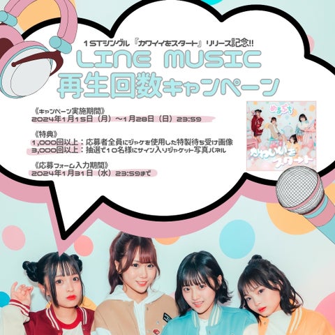 当社のYouTubeチャンネル「めるぷち」は、デビューシングル「カワイイをスタート」の配信を記念して、LINE MUSICで再生回数キャンペーンを開催します。