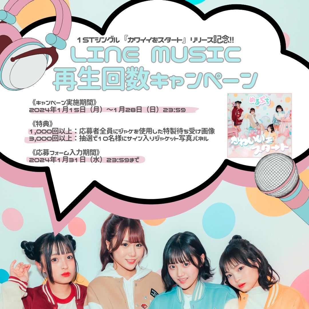 - YouTubeチャンネル「めるぷち」がデビューシングル「カワイイをスタート」の配信を記念して、LINE MUSICで再生回数キャンペーンを開催