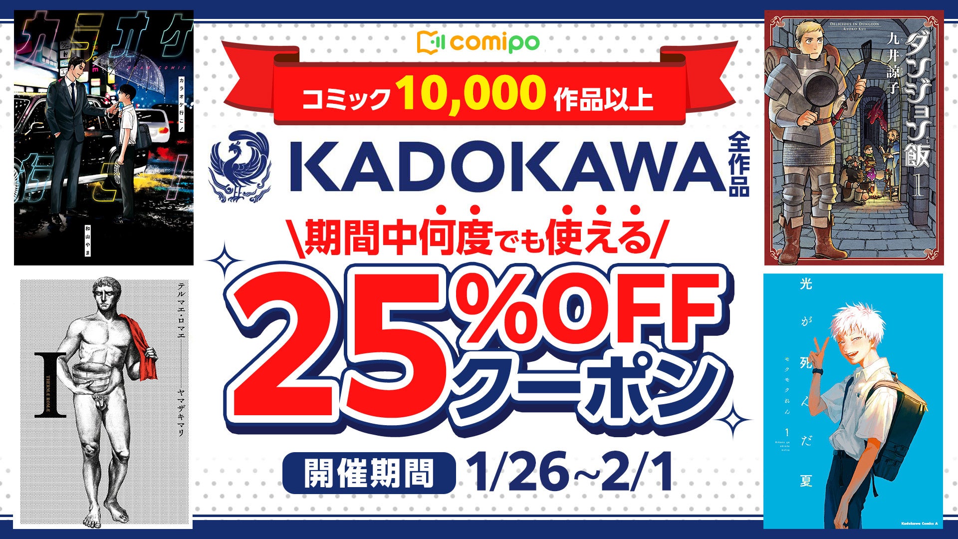 • KADOKAWA作品の取り扱いスタート、25%OFFクーポンも配布