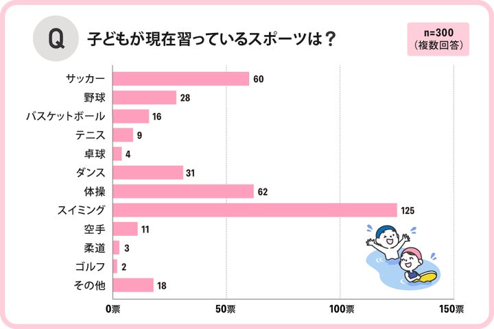 最も多かったのは「スイミング」で、2番目に多かったのは「体操」でした。
