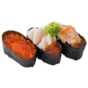 冬のぐんかん三昧は、いくら、真鱈白子、あんきもの3貫で構成されています。