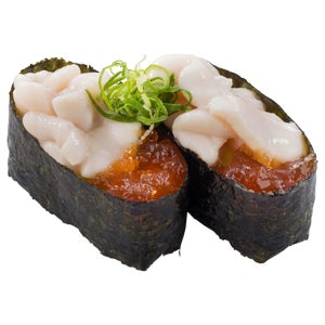 - 愛媛県産本鮪中とろ、特大赤えび、炙りまぐろ、あぶらかれい、銀だら、愛媛県産ひらめ、いくら、真鱈白子、あんきも、炙りまぐろ、青森県産むらさきいか、神戸牛そぼろ海苔包み、あじ明太マヨ炙り、真鱈白子ぐんかん