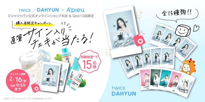 このキャンペーンでは、TWICEのダヒョンがブランドミューズを務め、直筆サイン入りチェキやクリアファイルがプレゼントされます。