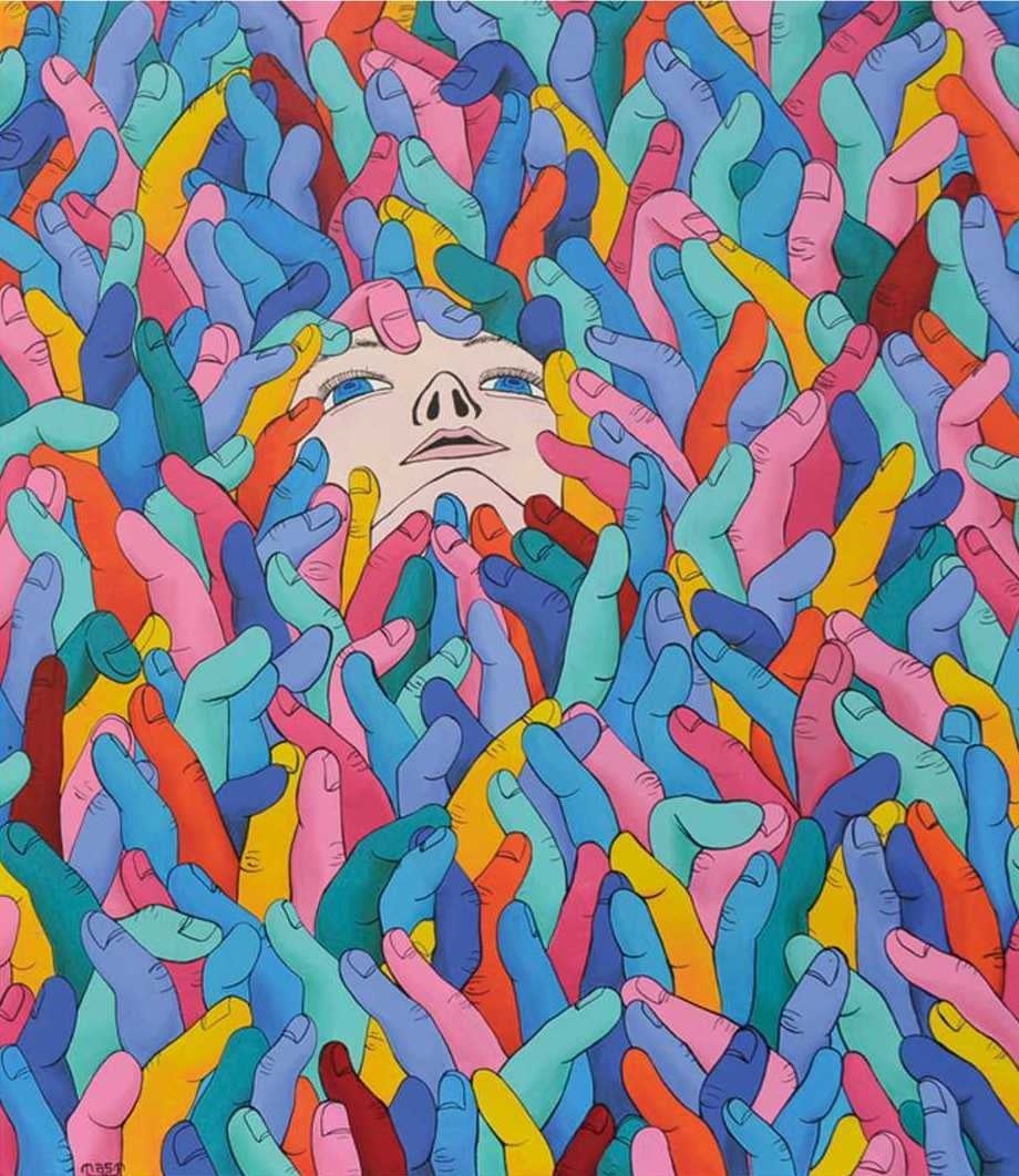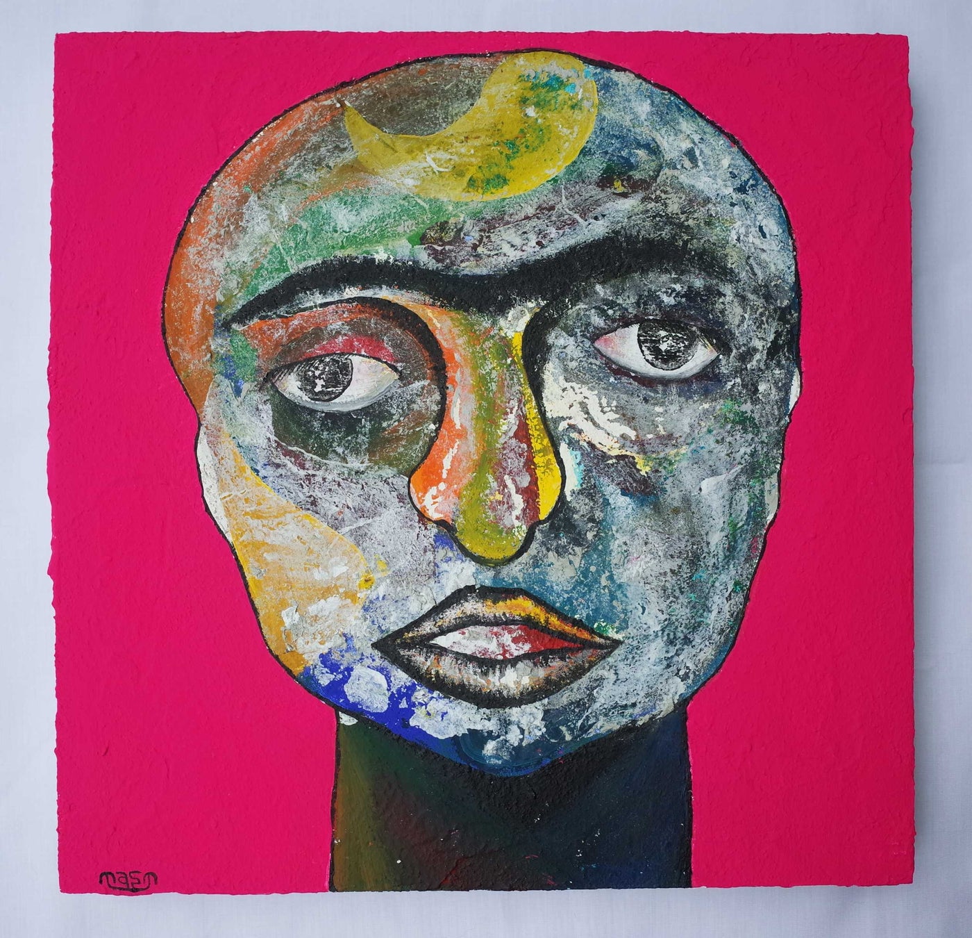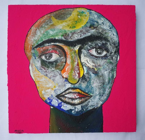 彼女の作品には、凛々しい女性の顔やフェイスペインティングを思わせる肖像画、ダイナミックな形象と鮮やかな色彩対比の抽象画などがあります。