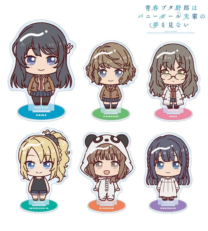 それぞれのアイテムには、桜島麻衣、古賀朋絵、双葉理央、豊浜のどか、梓川かえで、牧之原翔子がちょこんと立っているちびキャラが描かれています。