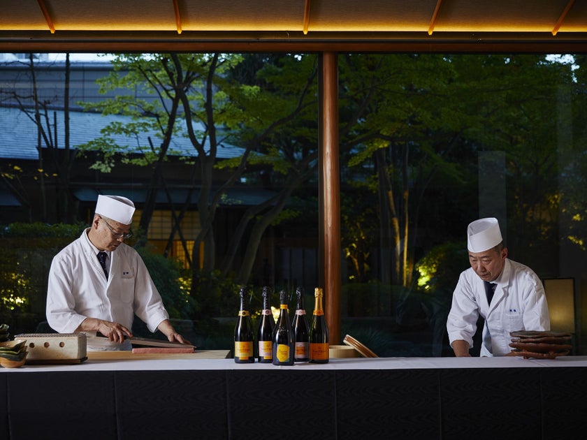 料理長の技を間近で見ながら、ヴーヴ・クリコのシャンパーニュとのマリアージュをお楽しみください。