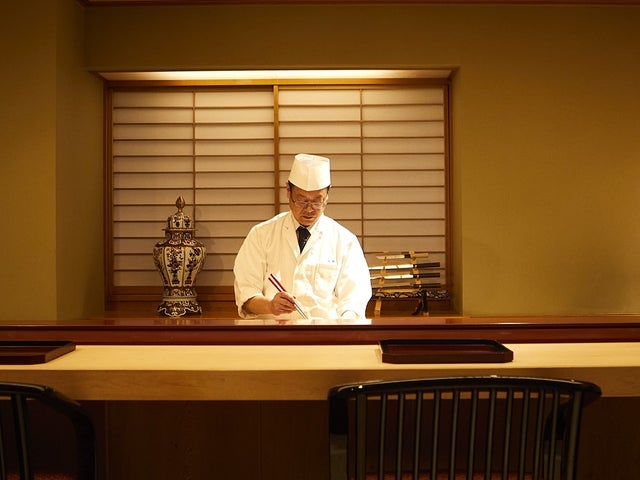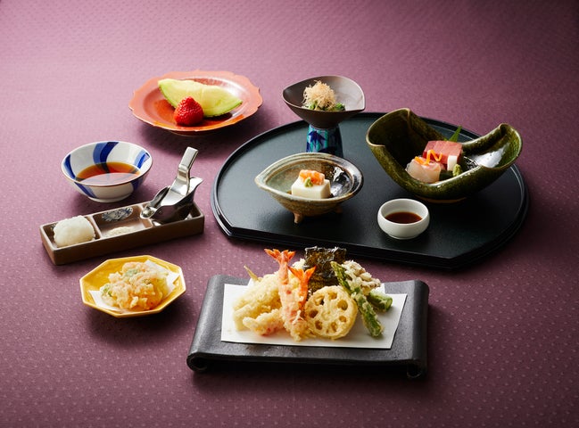 シャンパーニュとのマリアージュを追求した贅沢な献立が用意され、細魚や鯛のお造り、蛤と蟹の薄衣揚げなどが楽しめます。