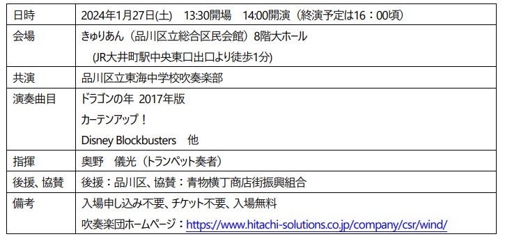 - 日立ソリューションズの第36回定期演奏会が1月27日に開催される