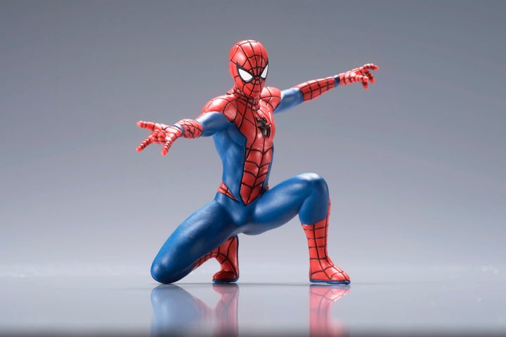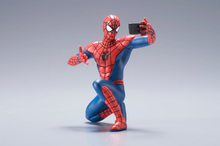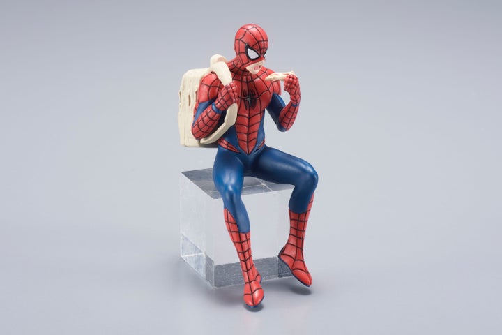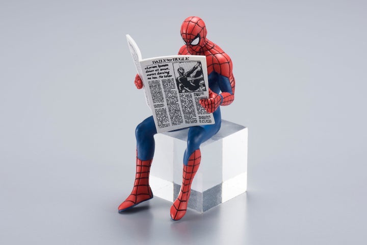 戦闘シーンだけでなく、新聞を読む姿や食事中の姿、自撮りポーズなど、スパイダーマンの日常を立体化しています。