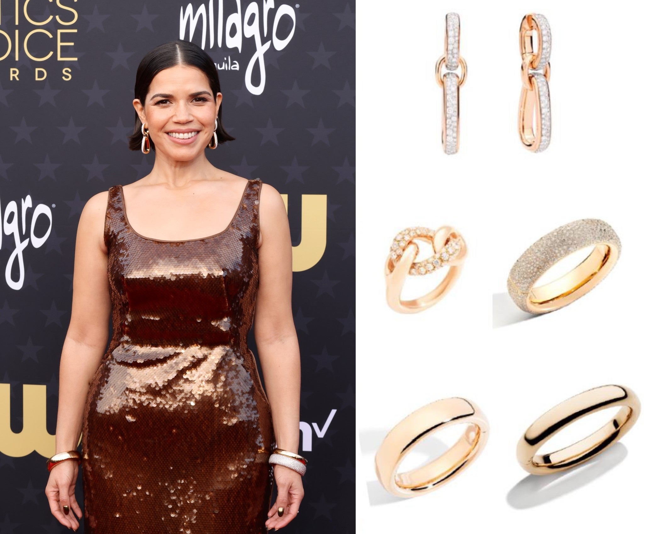 アメリカ・フェレーラやレイチェル・ブロズナハン、ヴァレンティーナ・ベルなどのセレブたちは、ポメラートのジュエリーを身に着け、会場に華やかさをもたらしました。