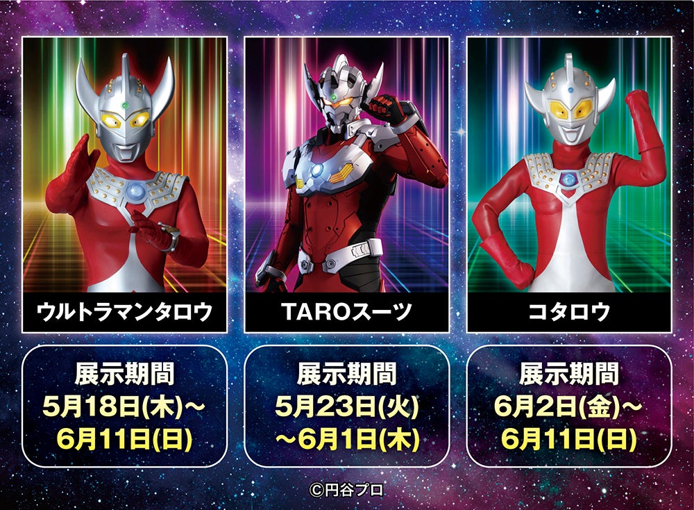 店内ではアニメ『ウルトラマンタロウ』の作中カットの展示、さらに5月23日(火)からはTAROスーツを店頭に展示。