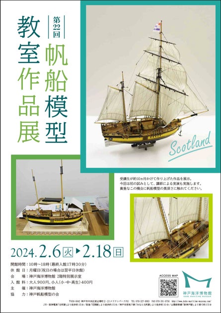神戸海洋博物館では、神戸帆船模型の会と協力して帆船模型教室の作品展示を開催します。