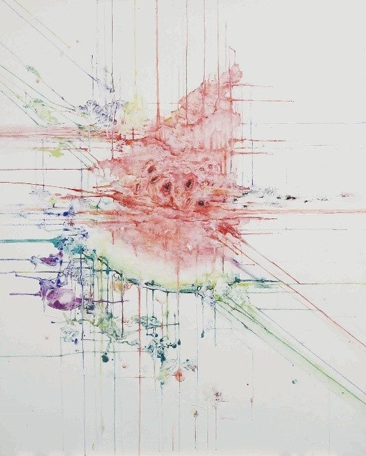 中野ともよ氏は岐阜県出身で、岩絵具・水彩絵具・アクリル・麻紙を使用した作品を制作しています。