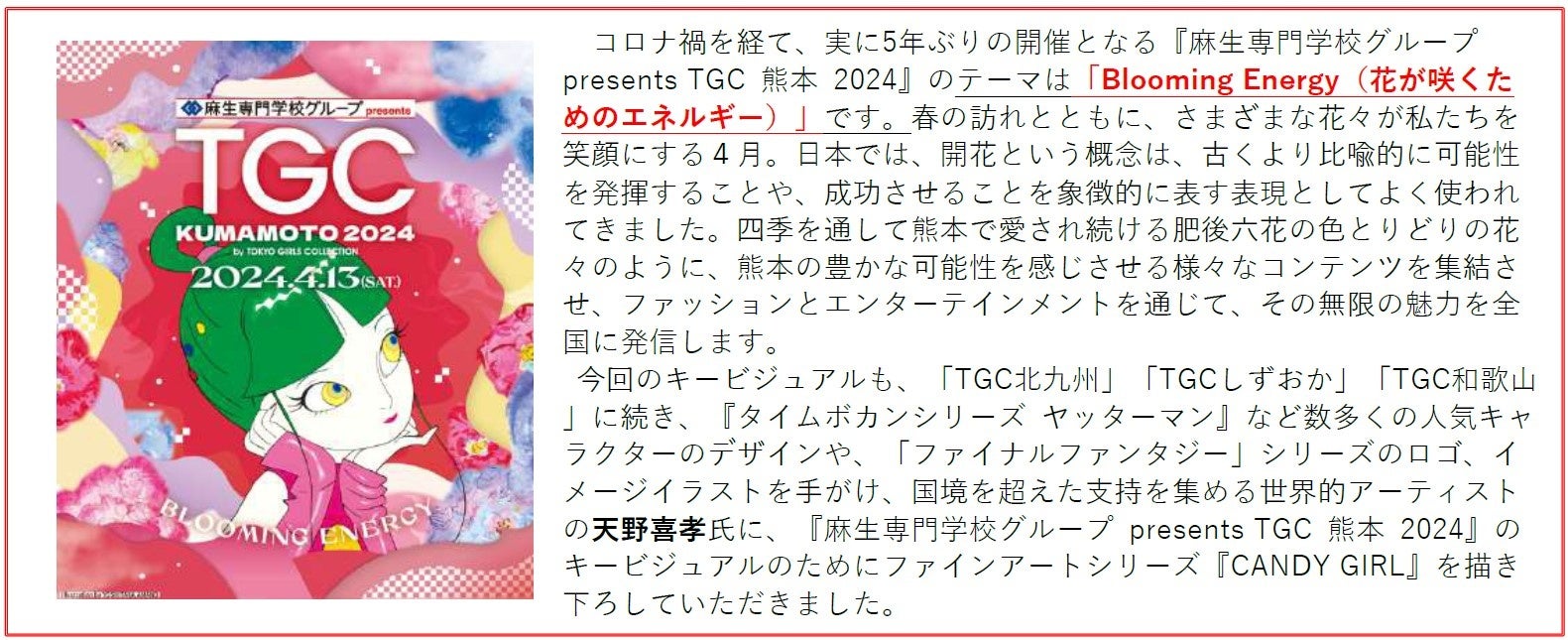 - TGC熊本2024が開催されることが発表された