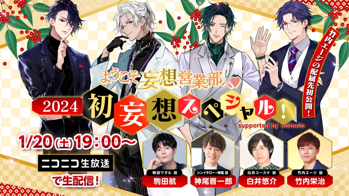 - 2024年1月20日にニコニコ生放送で無料生配信される「ようこそ妄想営業部へ♥2024 初妄想スペシャル!supported by animelo」イベント